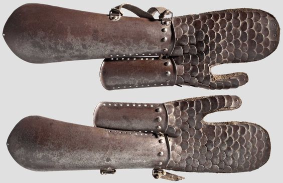 هوسار فامبريس البولندي (واقي الذراع) على طراز فرقة بازو الهندية الفارسية ، القرن السابع عشر / الثامن عشر ، مكون من قطعة واحدة ، كل منها بحزامين من الخارج. يحتوي كل من الدعامات وواقيات المعصم على العديد من فتحات التثبيت في الداخل. هناك قفاز مثبت على الأطراف السفلية مع درع مقياس مثبت على الجلد. الطول 51 سم.