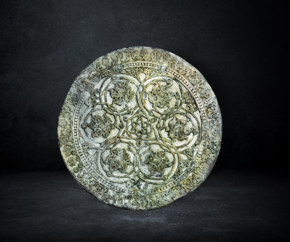 "تحفة مستديرة من الرخام" مصر – العصر المملوكي القرن 8هـ- 14م "يُزخرف التحفة دائرة مركزية بداخلها ست دوائر متماسة، وتم تشكيل هذه الدوائر عن طريق فروع نباتية تنتهي في الوسط بأزهار وأوراق خماسية البتلات، ونُقلت هذه التحفة إلي متحف الفن الإسلامي من مدرسة الأمير صرغتمش أحد أمراء السلطان الناصر محمد بن قلاوون، وتم أنشاء هذه المدرسة سنة 757هـ/1356م. وقد تم اختيار الشكل الزخرفي في وسط التحفة كشعار لمتحف الفن الإسلامي بالقاهرة منذ عام 2010م".
