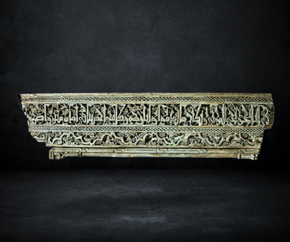 "إطار لنافذة جصيه من المدرسة الكاملية" مصر - العصر الأيوبي القرن 7هـ /13م "جاء هذا المثال النادر من المدرسة الكاملية 622هـ/1225م ,وكانت تطل علي شارع المعز فى ذلك الوقت, وزُخرف الإطار بكتابات كوفية وزخارف نباتية متداخلة ومتشابكة".