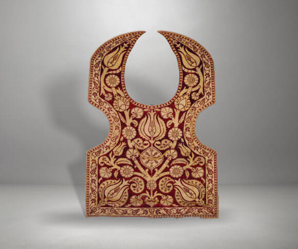 "غطاء سرج حصان من القطيفة والحرير وموشى بخيوط الفضة تركيا – العصر العثماني القرن 10هـ/16م. "تبرهن هذه التحفة الفنية على قيمة الرحمة عند المسلمين، حيث انتج الفن الإسلامي العديد من التحف الفنية لحماية الحيوانات والاهتمام بها، وعلى الرغم من أنها غطاء سرج كان يوضع على ظهر الحصان، إلا أننا نجد أن الفنان قد اعتنى بزخرفته وصنعه من القطيفة والحرير وأسلاك الفضة، وذلك يؤكد بما لا يدع مجالا للشك على فلسفة الجمال والرحمة والعطف على الكائنات الحية في الحضارة الإسلامية.