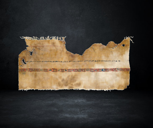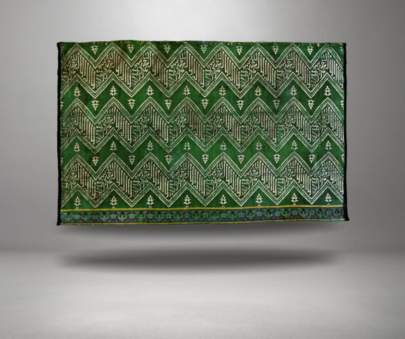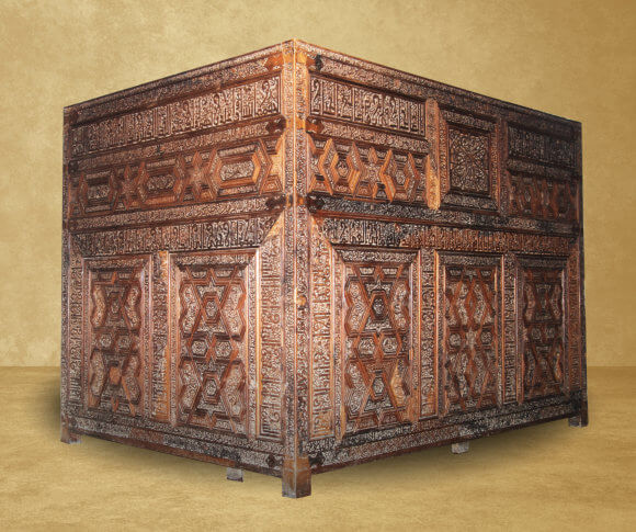 " نسيج من الحرير المزخرف بكتابات بخط الثلث نصها «لا اله الا الله محمد رسول الله» مكررة في أشرطة متموجة ويؤطرها من أعلى ومن أسفل أسماء الخلفاء الراشدين «أبوبكر- عمر- عثمان - علي» والتحفة اسُتخدمت كجزء من غطاء قبر الرسول صلى الله عليه وسلم، أو ربما اسُتخدمت كجزء من الستارة الداخلية للكعبة المشرفة مصر – العصر العثماني القرن 10هـ /16م