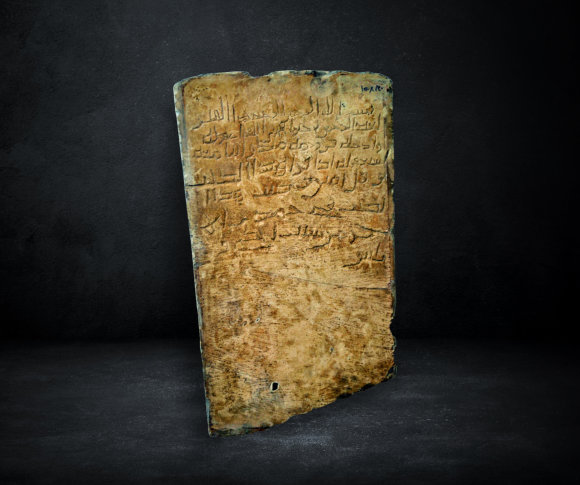 "شاهد قبر من الحجر الجيري مصر – عصر الخلفاء الراشدين القرن 1 هــ / 7 م" "يعتبر هذا الشاهد أهم التحف الفنية الباقية في الفنون الإسلامية؛ وذلك لأنه أقدم تحفة مؤرخة في الآثار الإسلامية الباقية، وأقدم وأول نموذج للكتابات في الفن الإسلامي (فيما نعرف حتى الأن). ويتضمن الشاهد ثمانية أسطر بالخط الكوفي البدائي، تحتوي على اسم المتوفى وهو عبد الرحمن بن خير الحجرى أو الحجازي، والدعاء له بالمغفرة وتاريخ وفاته في جمادى الآخرة من عام 31 هـ / يناير أو فبراير 652م.