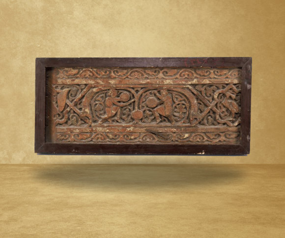 لوح من الخشب عليها بالحفر مناظر آدمية وحيوانية ونباتية مصر – العصر الفاطمي القرن 5هـ: 11م